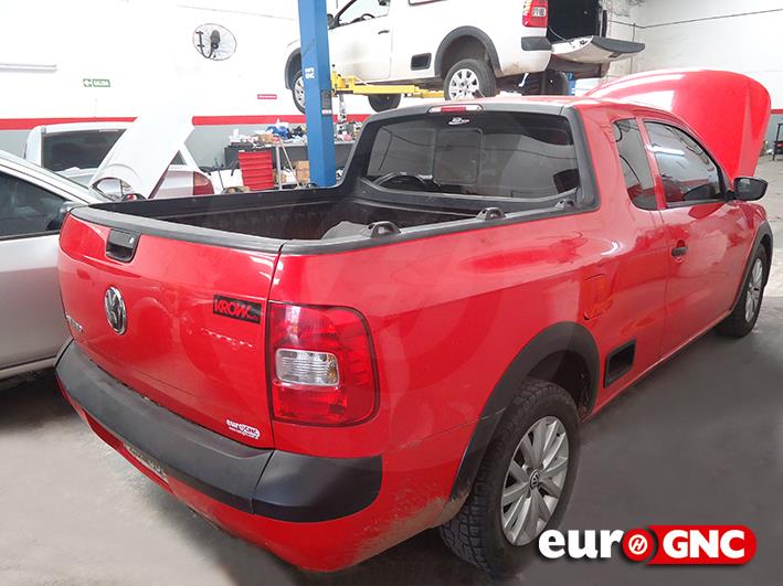 Opciones de cilindros en el baúl → 65, 70 u 80 litros | Bajo chasis → 2×30 o 2×40 litros | Imágenes → Instalación Volkswagen Saveiro, equipo Italiano GNC 5ta. Generación, con 1 cilindro de 80 lts.