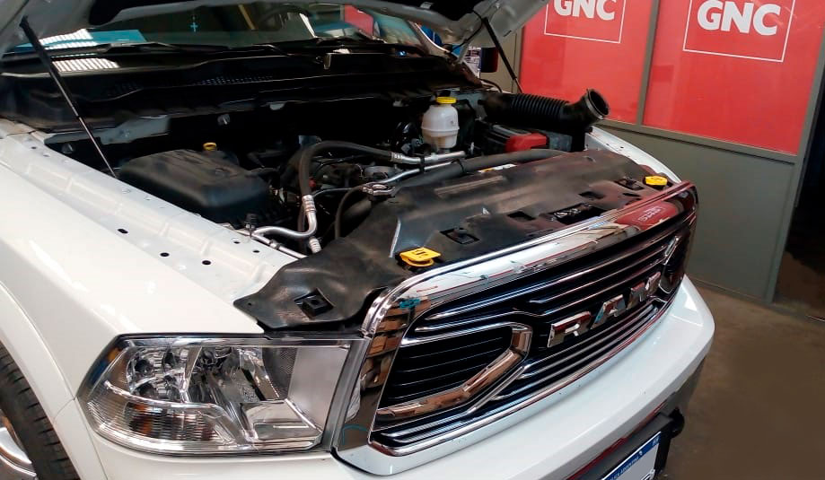 Opciones de cilindros en la caja → 80, 90, 100 o 120 litros | Bajo chasis → 2×30 litros | Imágenes → Instalación Dodge RAM, equipo GNC Italiano, 5ta. Generación, con 1 cilindro de 100 lts. + 1 cilindro de 60 lts. ambos en la caja.