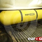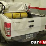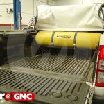 Opciones de cilindros en la caja → 80, 90, 100 o 120 litros | Bajo chasis → 2×30, 2×40 o 2×60 litros | Imágenes → Instalación Ford Ranger 2014, Equipo Italiano GNC 5ta. Generación, cilindro 100 lts. en la caja.