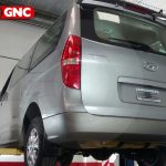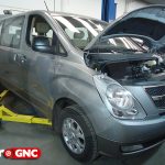 Opciones de cilindros bajo chasis → 2×30 o 2×40 litros | Imágenes → Instalación Hyundai H1, equipo Italiano GNC 5ta. Generación, 2 cilindros de 40 lts. bajo chasis, escape original.