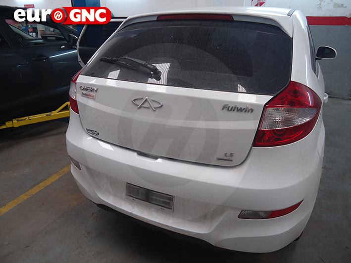 Opciones de cilindros en el baúl → 40, 60 o 65 litros | Bajo chasis → No se puede | Imágenes → Instalación Chery Fulwin, equipo Italiano GNC 5ta. Generación, con cilindro de 65 lts.
