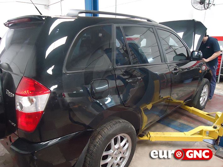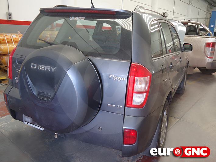 Opciones de cilindros en el baúl → 40, 60, 65 o 70 litros | Bajo chasis → No se puede | Imágenes → Instalación Chery Tiggo, equipo Italiano GNC 5ta. Generación, con cilindro de 70 lts.