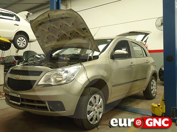 Opciones de cilindros en el baúl → 40, 60 o 65 litros | Bajo chasis → No se puede | Imágenes → Instalación Chevrolet Agile, equipo Italiano GNC 5ta. Generación, cilindro 60 lts.