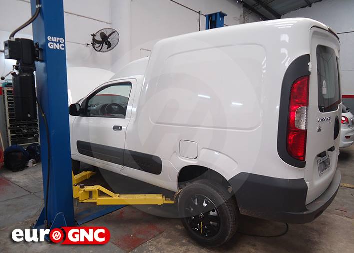 Opciones de cilindros en el baúl → 60, 65 o 70 litros | Bajo chasis → 2×30 litros | Imágenes → Instalación Fiat Fiorino 2015, equipo Italiano GNC 5ta. Generación, con 2 cilindros x 30 lts. bajo chasis