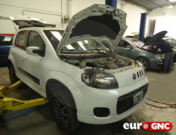 Opciones de cilindros en el baúl → 40 o 60 litros | Bajo chasis → No se puede | Imágenes → Instalación Fiat Uno, equipo Italiano GNC 5ta. Generación, con cilindro de 60 lts.