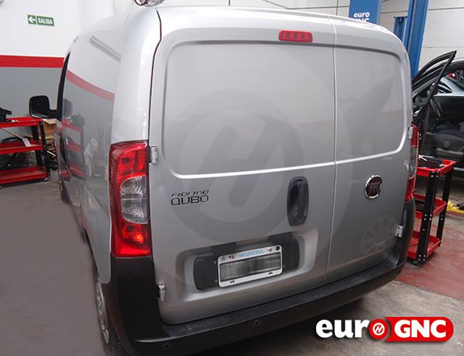 Opciones de cilindros en el baúl → 60, 65 o 70 litros | Bajo chasis → 2×30 litros | Imágenes → Instalación Fiat Fiorino Qubo, equipo Italiano GNC 5ta. Generación, con cilindro de 60 lts.
