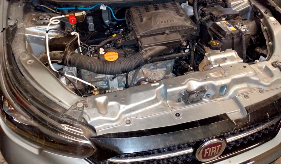 Opciones de cilindros en el baúl → 40, 60 o 65 litros | Bajo chasis → No se puede | Imágenes → Instalación Fiat Cronos, equipo Italiano GNC 5ta. Generación, con cilindro de 65 lts.