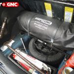 Opciones de cilindros en el baúl → 60, 65 o 70 litros | En el lugar de la rueda de auxilio → 2×30 litros | Imágenes → Instalación Volkswagen Suran, equipo Italiano GNC 5ta. Generación, con cilindro de 60 lts.